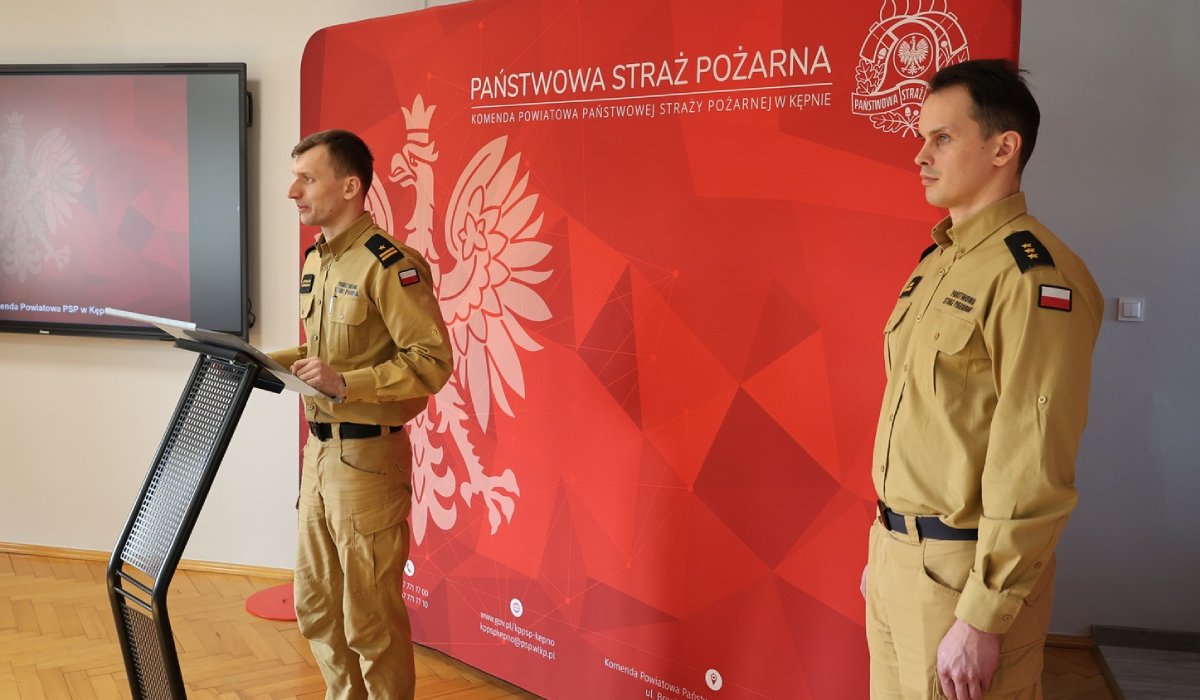 Odprawa służbowa, podsumowująca działalność w 2025 r., w Komendzie Powiatowej Państwowej Straży Pożarnej w Kępnie.